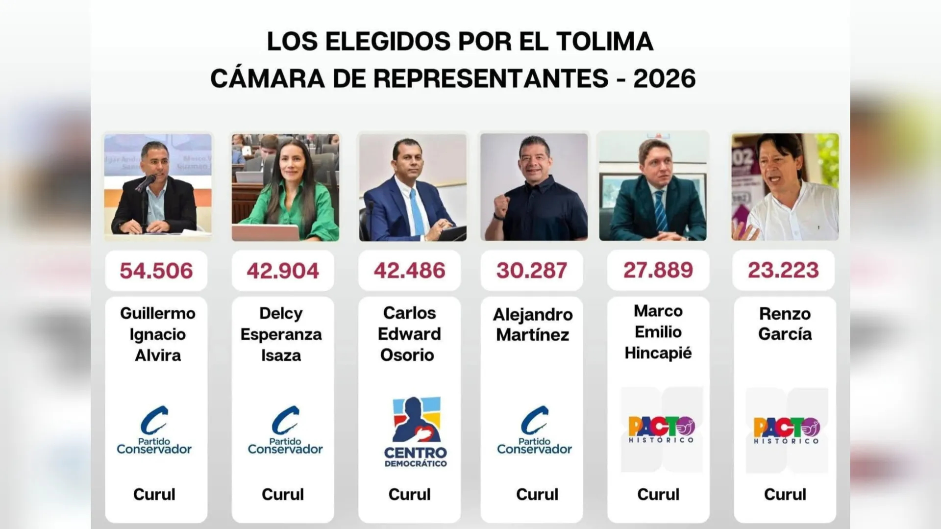 Luego de nueve días de revisiones y escrutinios electorales, quedaron oficialmente confirmados los seis representantes a la Cámara por el departamento del Tolima. El Partido