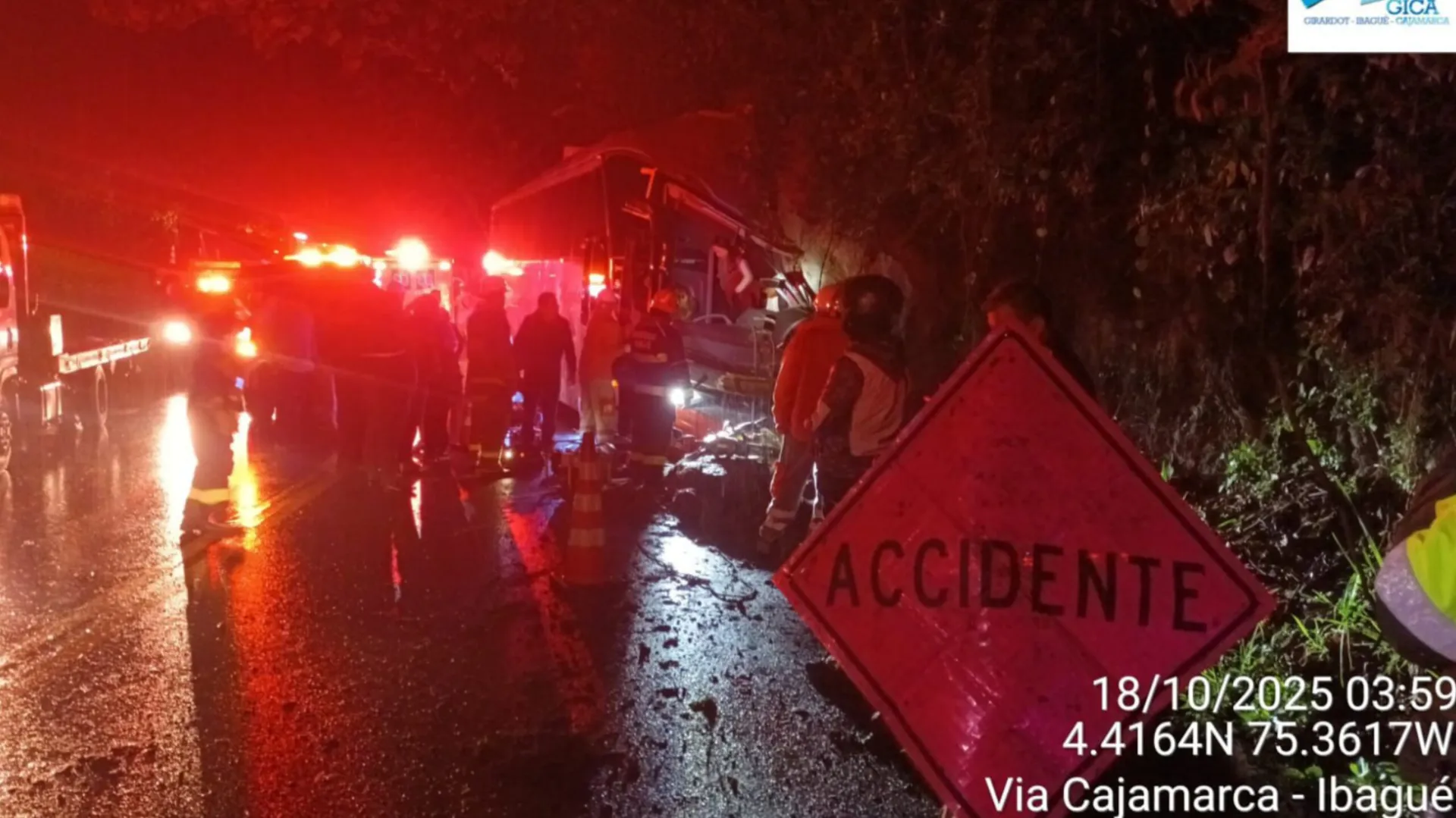 En la madrugada de este viernes se registró un accidente de tránsito en la vía que comunica a Ibagué con Cajamarca, a la altura del kilómetro 60+745 de la Ruta 40-03, margen derecha. El incidente involucró a un bus intermunicipal de la empresa Flota Magdalena, que colisionó contra una peña mientras se desplazaba hacia el occidente del departamento.