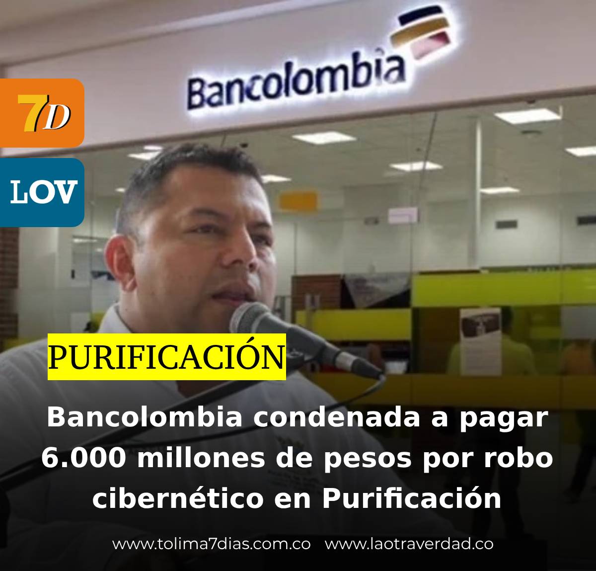 La entidad financiera Bancolombia ha sido declarada contractual y parcialmente responsable de este incidente, que resultó en una pérdida de 10.987 millones de pesos para la municipalidad. Como resultado de esta condena, Bancolombia deberá pagar una indemnización de 6.000 millones de pesos a Purificación, además de una multa de 174 millones de pesos, de los cuales el 50% irá destinado a la Superintendencia y el restante a la Red Nacional de Protección al Consumidor.