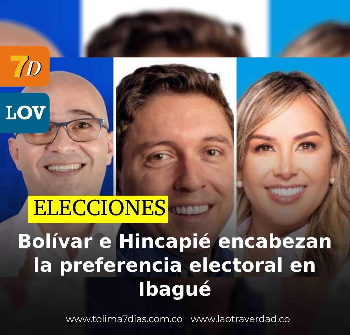 En el más reciente sondeo realizado por la firma Derecho Electoral en la ciudad de Ibagué, Jorge Bolívar y Marco Hincapié se perfilan como los candidatos con mayor aceptación entre los votantes locales, consolidándose como líderes en la intención de voto de cara a las elecciones programadas para el 29 de octubre.