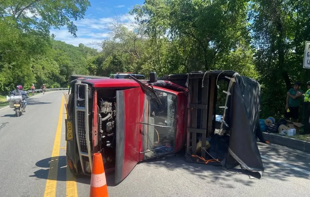 Un aparatoso accidente de tránsito se registró en la vía que conecta a Alvarado con Lérida, en el kilómetro 47, donde una camioneta de placas FDD 383 de Ibagué, que transportaba material de construcción, terminó volcada sobre la carretera. El conductor quedó atrapado dentro de la cabina, lo que generó gran preocupación entre los testigos.