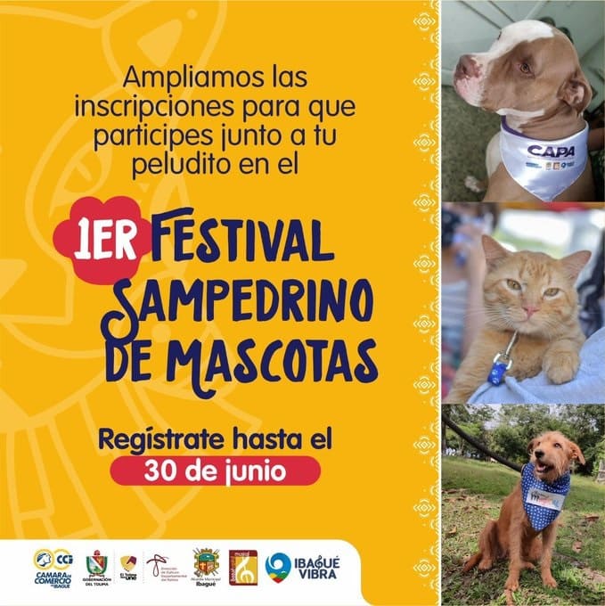 Así las cosas, el primer Festival Sampedrino de Mascotas iniciará este sábado con el desfile de ‘peluditos’, a partir de las 9:00 de la mañana en la plazoleta Santa Librada, y finalizará frente a la Alcaldía de Ibagué con la vitrina comercial en la que se podrá encontrar accesorios y servicios veterinarios.