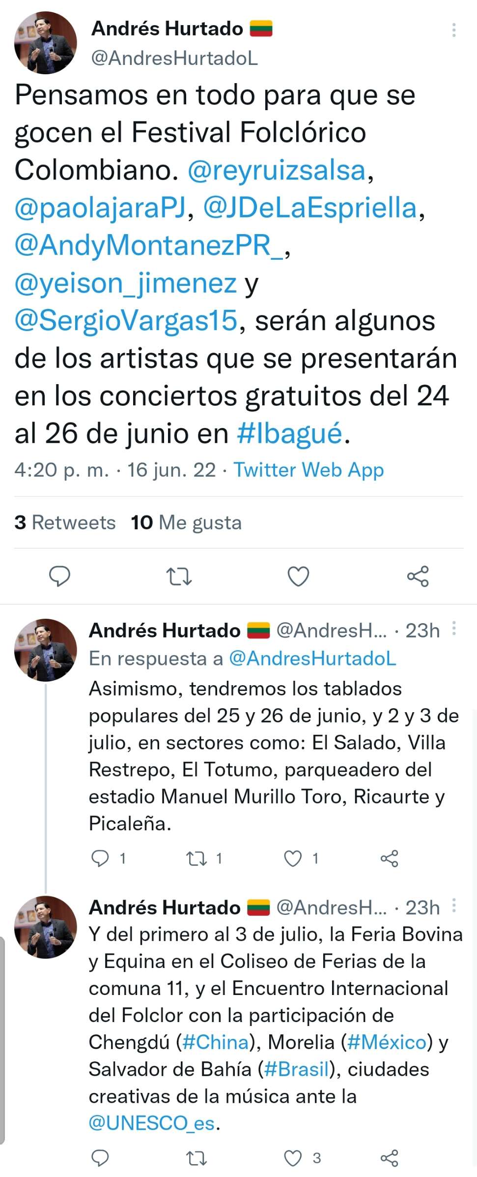 El alcalde Andrés Fabián Hurtado hizo pública la información de los artistas invitados que se presentarán en el marco del festival folclórico, siendo es una razón más para visitar la ciudad de ibagué en plenas ferias y fiestas.