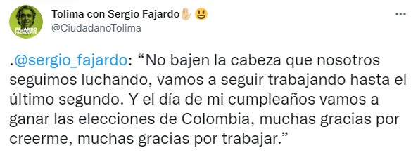 Aunque Fajardo en la actualidad a mantenido una tendencia del 10% en la intención de votos según las encuestas, él no descarta ser la sorpresa en las próximas elecciones del 29 de mayo.