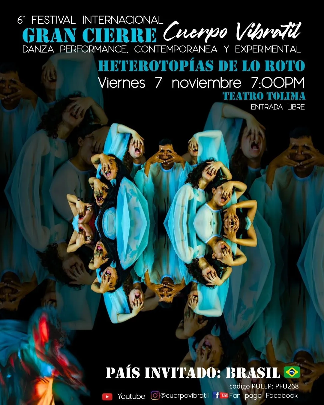 El Festival Internacional Cuerpo Vibrátil cierra su sexta edición con una programación que convierte a Ibagué en un epicentro de creación contemporánea. Bajo el concepto “Heterotopías de lo roto”, artistas de Brasil, México y Colombia presentarán obras que celebran el cuerpo como territorio de resistencia y transformación.