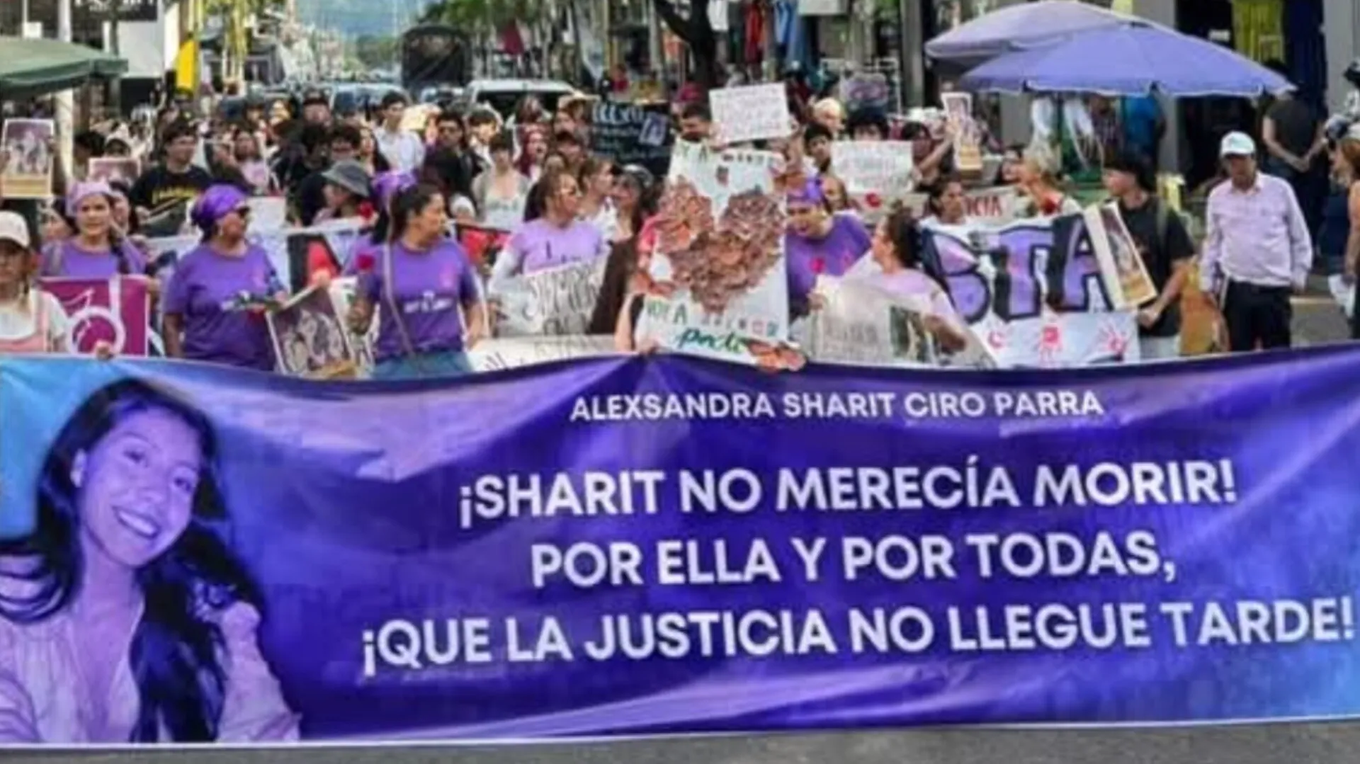 Durante la movilización se escucharon consignas como “¡A Sharit la mataron!” y “¡Ni una menos!”, mientras las participantes avanzaban por la vía en medio de un ambiente de solidaridad y memoria colectiva.