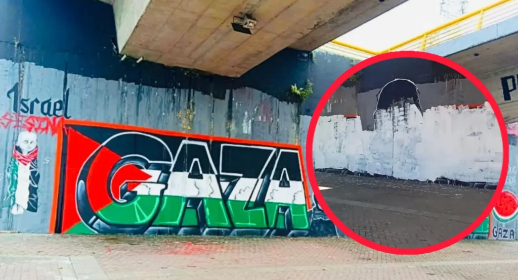 El mural realizado esta semana en Ibagué en solidaridad con Palestina fue borrado en la madrugada por desconocidos. Artistas denuncian la censura del arte que denuncia el sufrimiento de los pueblos en conflicto y la falta de respeto por la libertad de expresión en el espacio público.