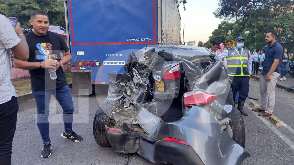 Los hechos se registró en el sector del Sena entre la calle 42 y 43 por la Avenida Ferrocarril, donde un vehículo particular quedó atrapado entre dos tractomulas que dejó como resultado pérdida total del vehículo y su ocupante salió ileso.
