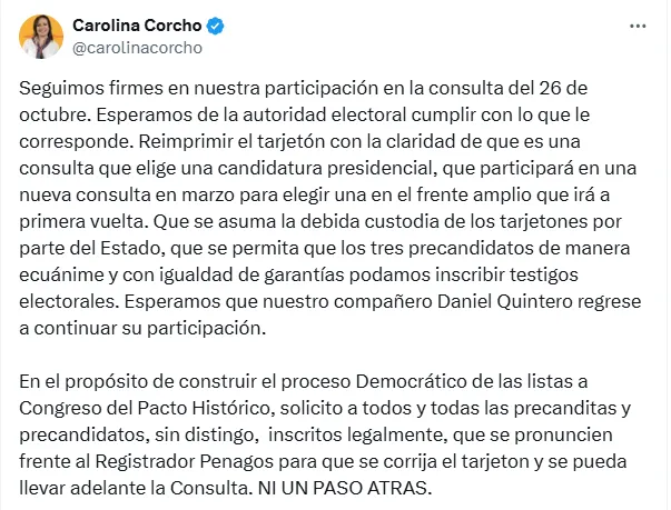 En medio de este panorama, Daniel Quintero anunció su retiro de la consulta para seleccionar al candidato único de la izquierda. La decisión, tomada en este contexto de incertidumbre institucional, busca quizá evitar que su figura quede en medio de debates legales o interpretaciones sobre la legitimidad del proceso.