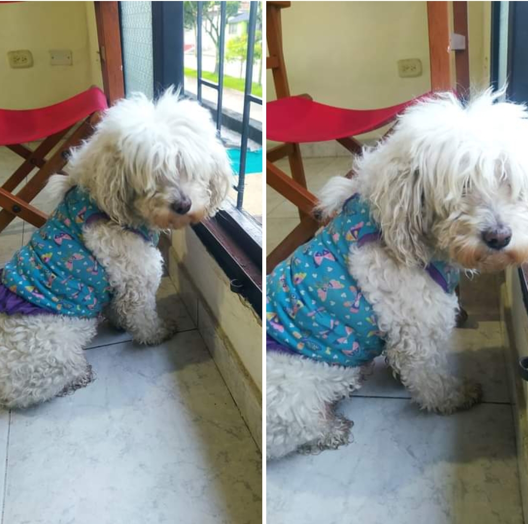 “Es muy noble y parece que tiene dueño por la ropita que tiene y está gordita. Está en mi casa. Mientras aparecen los dueños”.