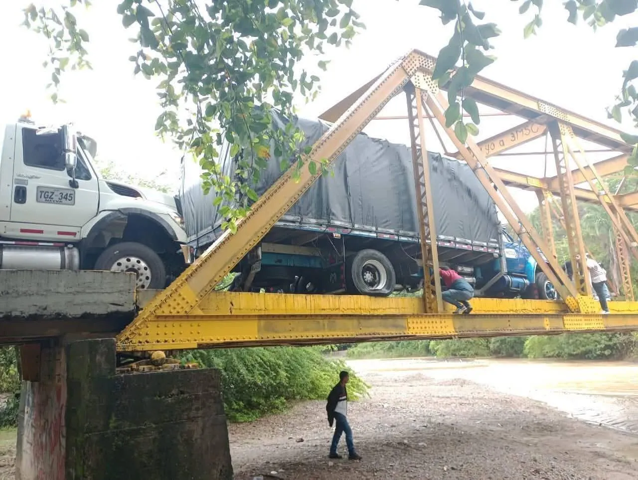 De acuerdo con las primeras informaciones, el vehículo sufrió una falla mecánica que le hizo perder el control en medio del trayecto, terminando incrustado contra la estructura metálica del puente. La magnitud del percance dejó al camión en una posición crítica, ocupando completamente la vía y generando un represamiento inmediato de automotores que transitaban por la zona en ese momento.